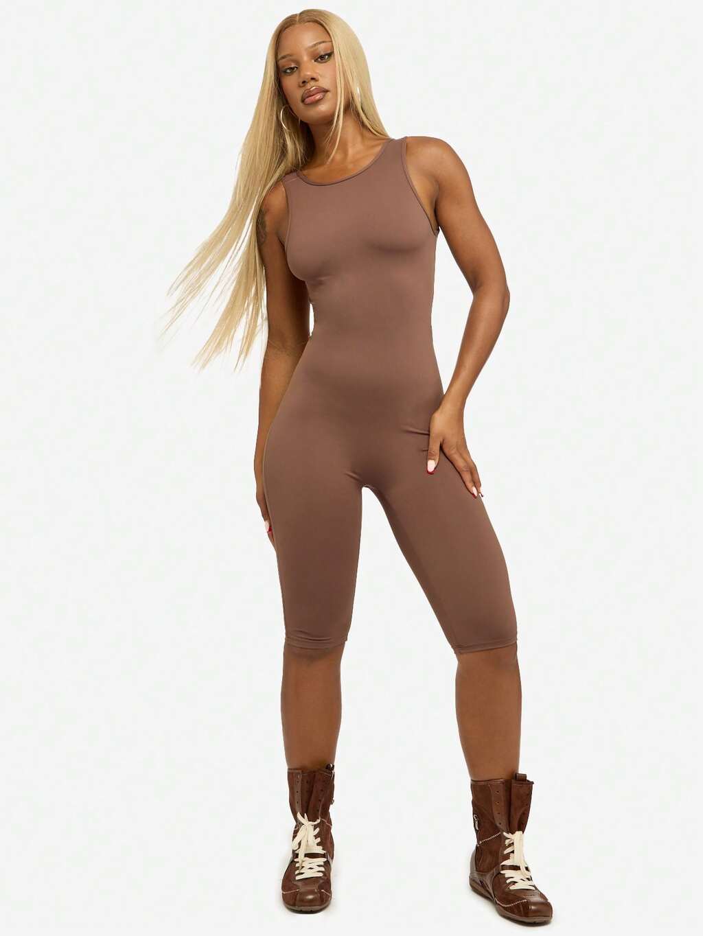 SUMWON WOMEN カプリ丈ノースリーブ ユニタード モダンボディスーツ ワンピースジャンプスーツ フィットフォーミング ストレッチ バレエ パフォーマンス イブニングウェア
