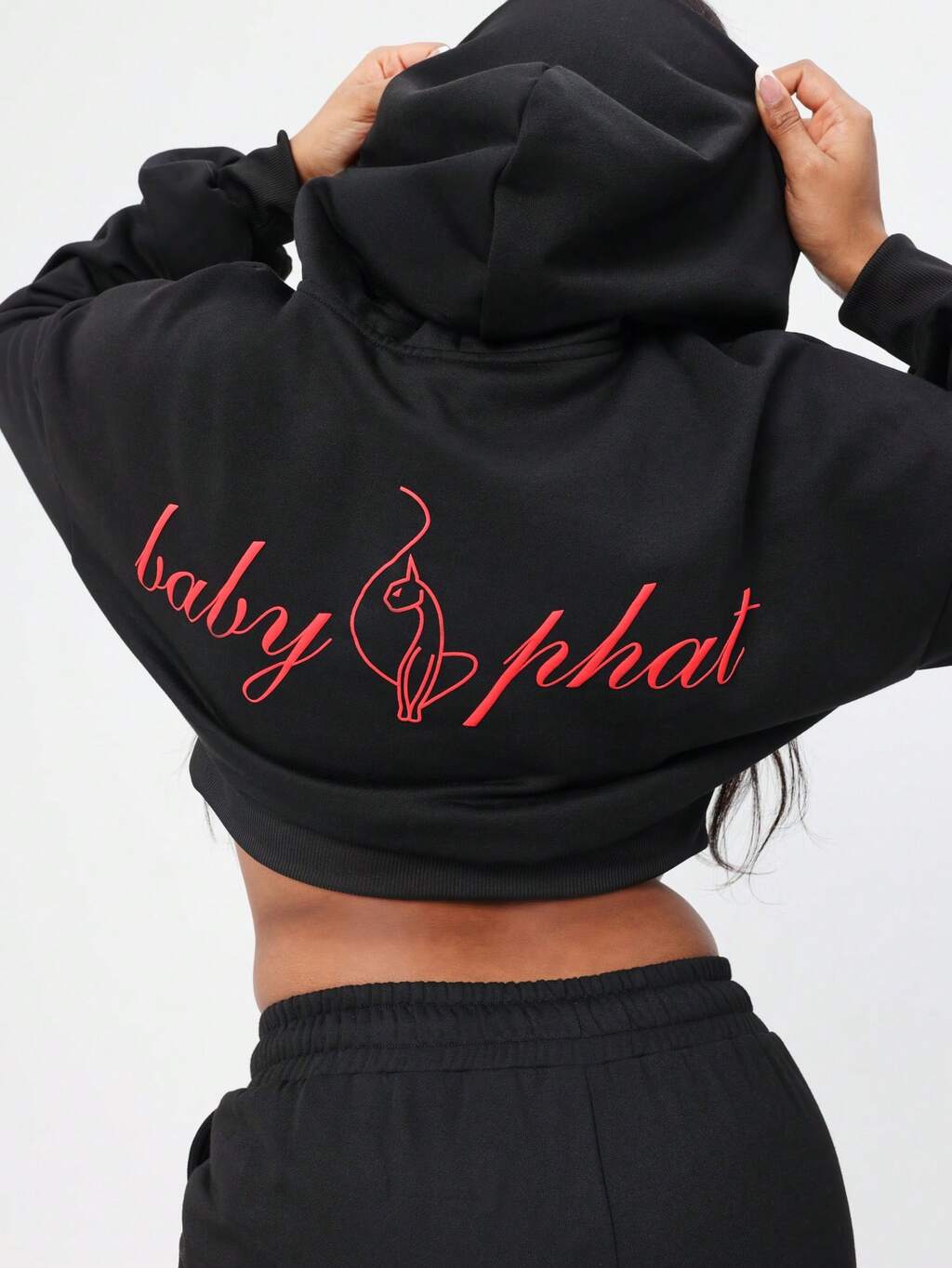 BABYPHAT テキストプリント入り オーバーサイズ クロップド スウェットシャツ ロング丈 ドローストリング プルオーバー