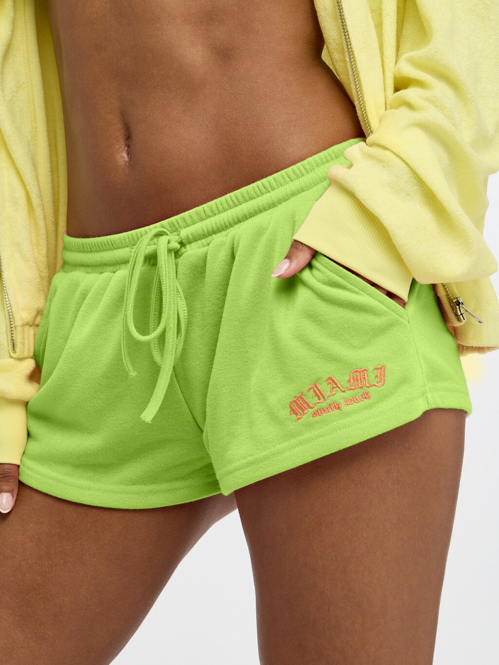 SUMWON WOMEN ウィメンズグラフィック ドローストリング ブーティーショーツ、マイアミテキストプリント、サマーフェスティバル カジュアルルームウェア ショートパンツ