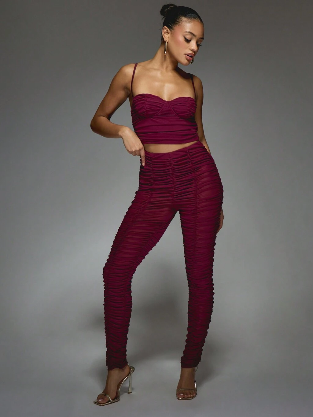 MISSGUIDED ルーシュボディコンクロップトップ ハイスリットマキシスカートセット