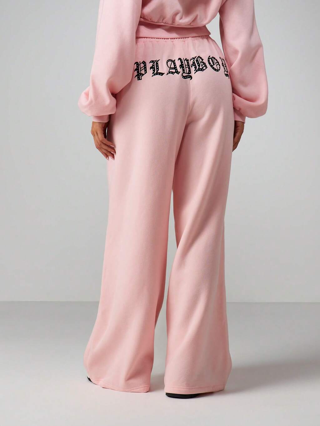 Missguided x Playboy ピンクのパイピングと伸縮性のあるウエストのワイドレッグジョガー