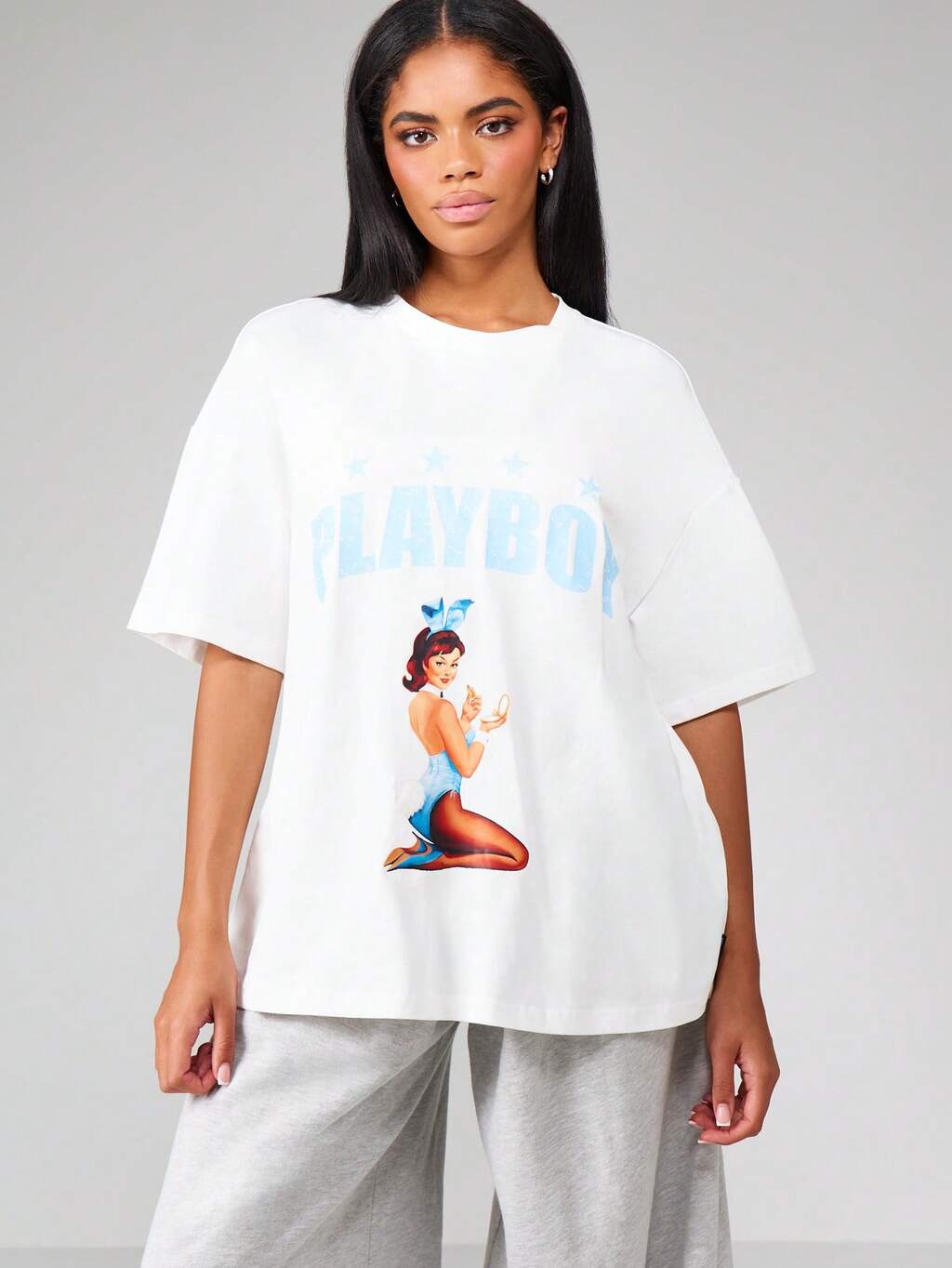 Missguided x Playboy オーバーサイズ グラフィック クルーネック Tシャツ