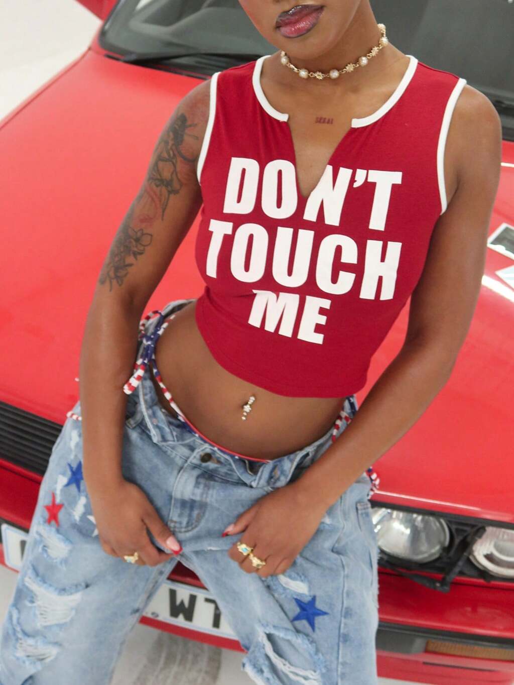 SUMWON WOMEN フェスティバル タンクトップ クロップド ステートメント ノースリーブ セレブレーション サマー ホリデー タンク