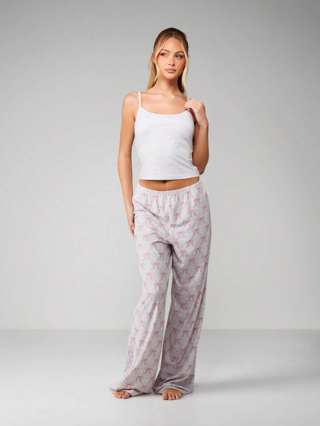 MISSGUIDED リボンプリントキャミタンクトップと伸縮性パンツ