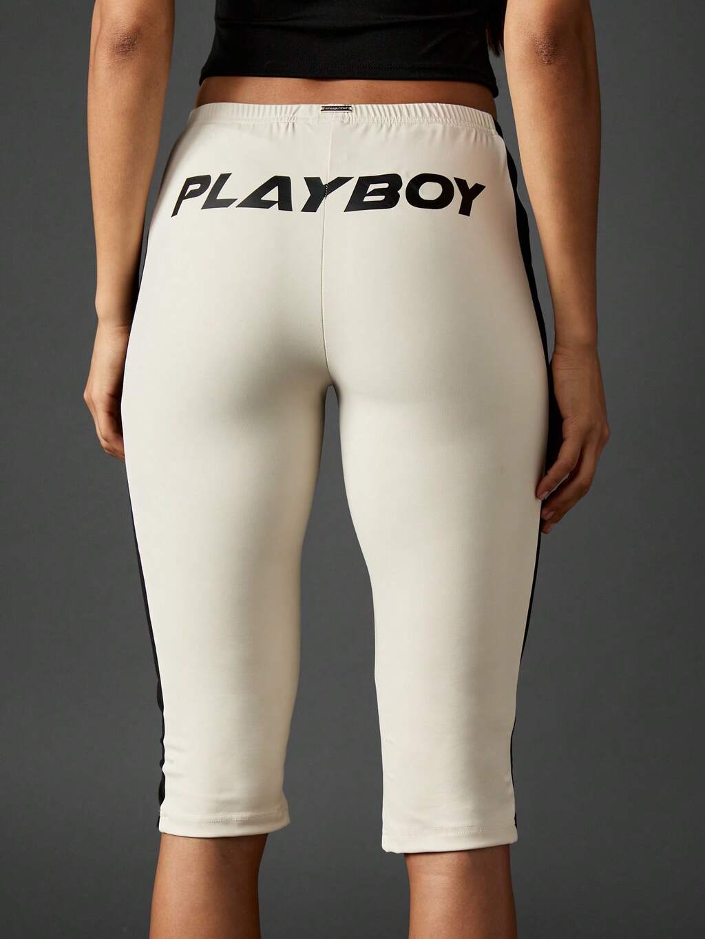 Missguided x Playboy ロゴ入りスクリプトグラフィックフレアレギンス