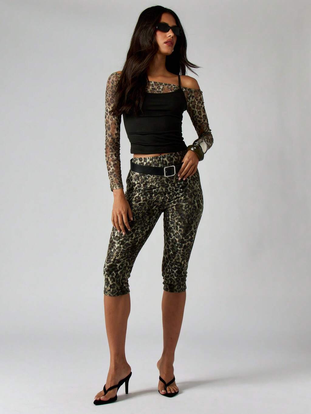 SUMWON WOMEN アニマルプリントカプリレギンス ハイライズ スネークスキンパターン メッシュ素材 ファッション 夏 バカンス パーティー クラブ イブニングウェア