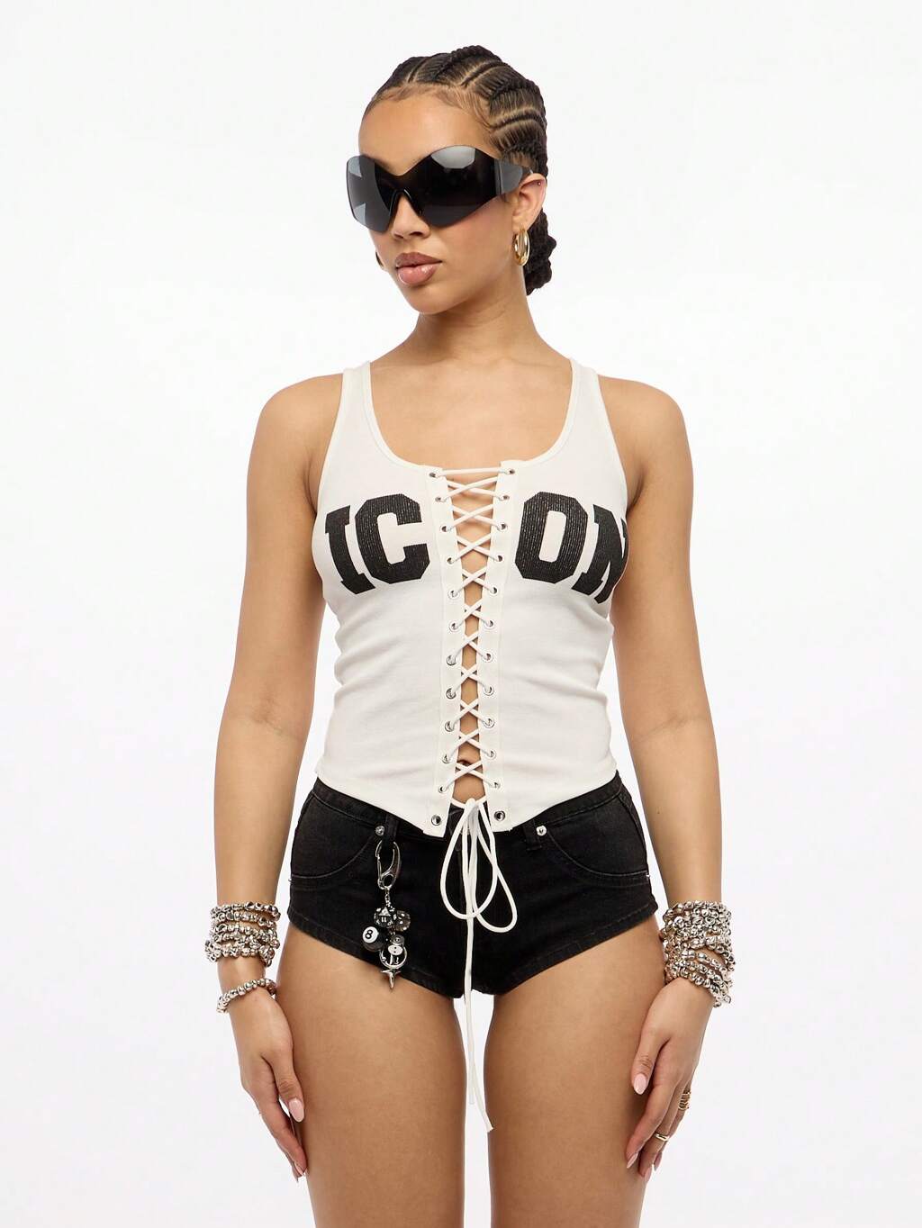 SUMWON WOMEN ストリートウェア レースアップ タンクトップ リブ編み スポーツ 美的 コルセット スタイル ビスチェ ノースリーブ サマーフェスティバルトップス