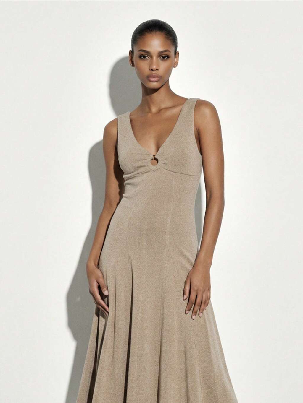 KSTM Vネック ノースリーブ Aライン フローリー ドレス エンパイアウエスト カジュアル サマードレス
