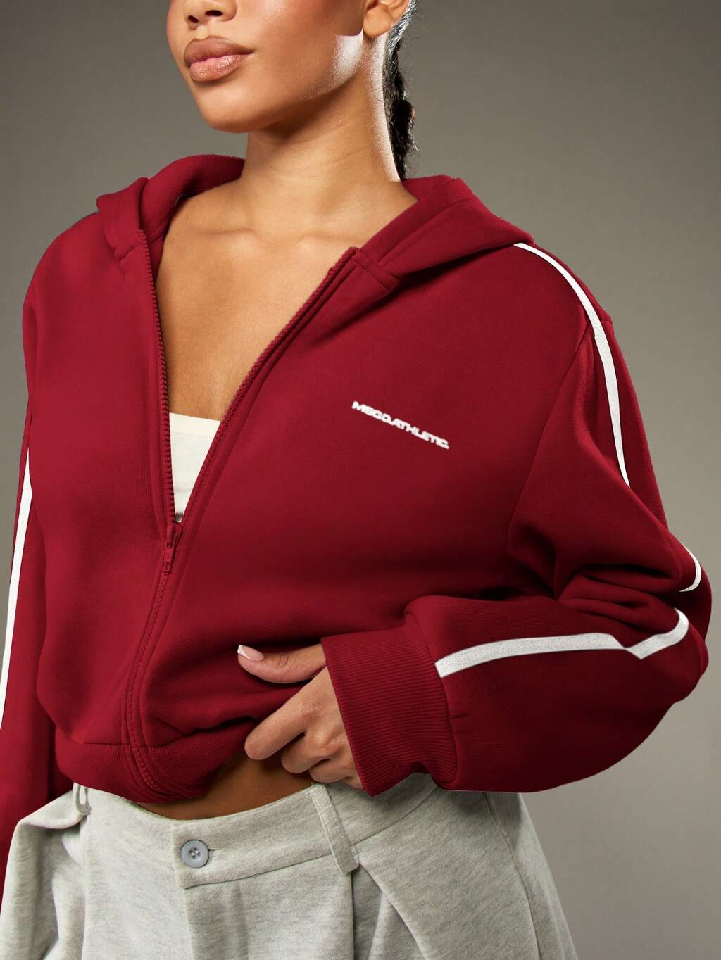 MISSGUIDED オーバーサイズ フード付き ジップアップ クロップド スウェットシャツ
