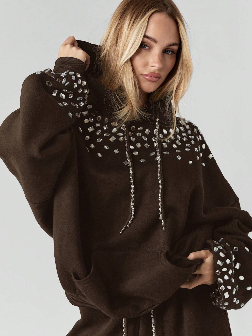 MISSGUIDED クリスタル装飾プルオーバーパーカー(ドローストリング付き)