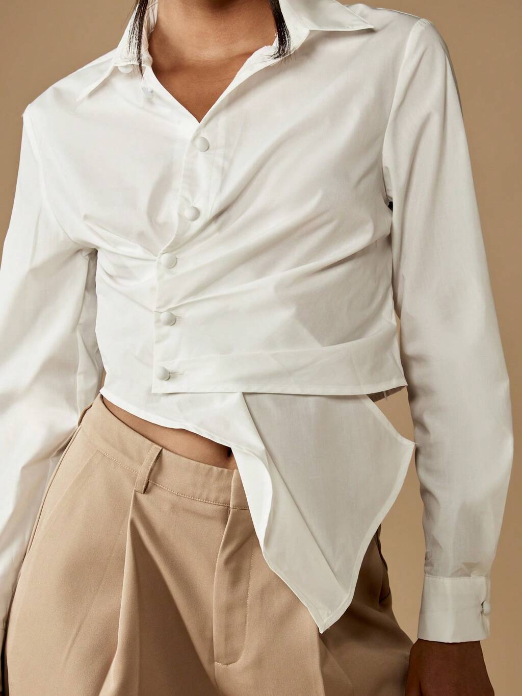 MISSGUIDED シャーリングディテールのアシンメトリークロップドボタンダウンシャツ