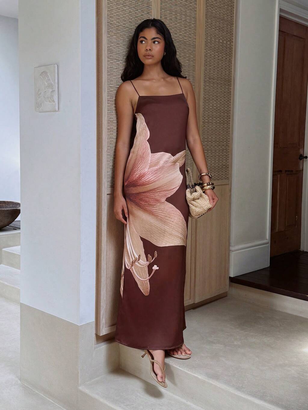AiiRZ 캐미 플로럴 새틴 맥시 드레스