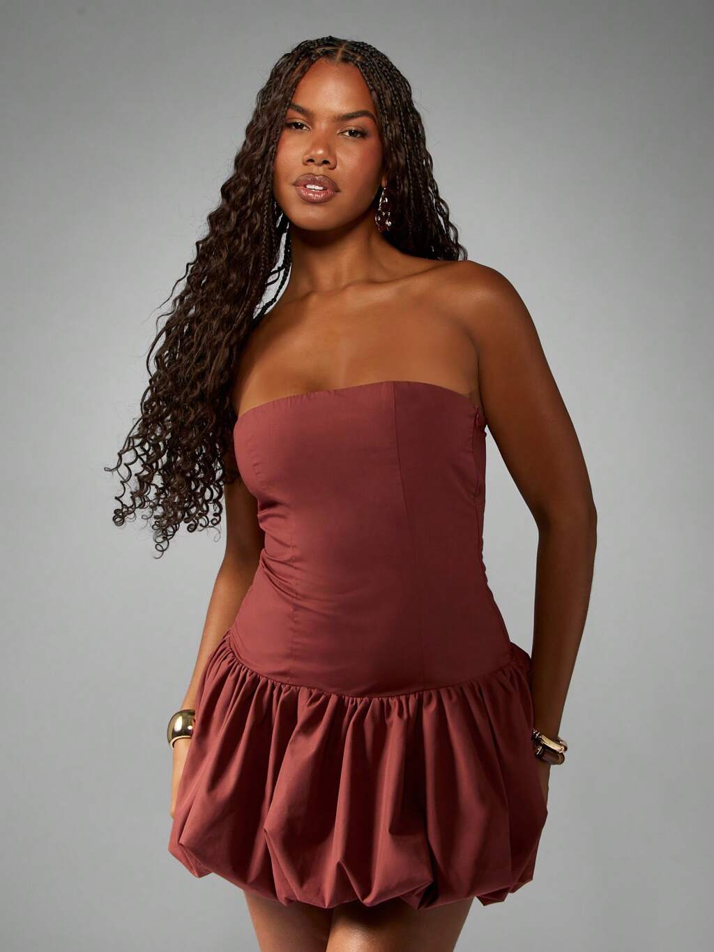 MISSGUIDED 스트랩리스 버블 헴 미니 드레스, 주름 스커트, 크리스마스