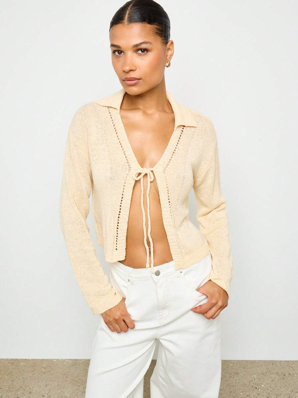 AiiRZ 크롭트 앞단 매듭 가디건 여름 가벼운 니트 탑 비치 커버업 리조트 웨어 봄 패션 라운지웨어