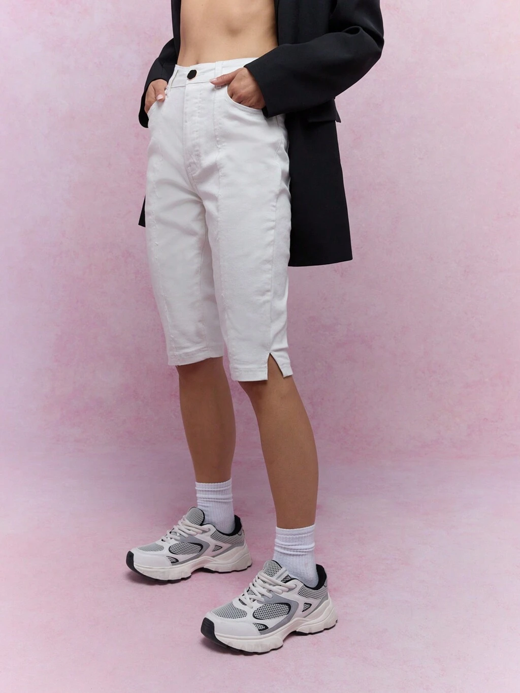 MISSGUIDED 사이드 슬릿 헴 데님 카프리 팬츠