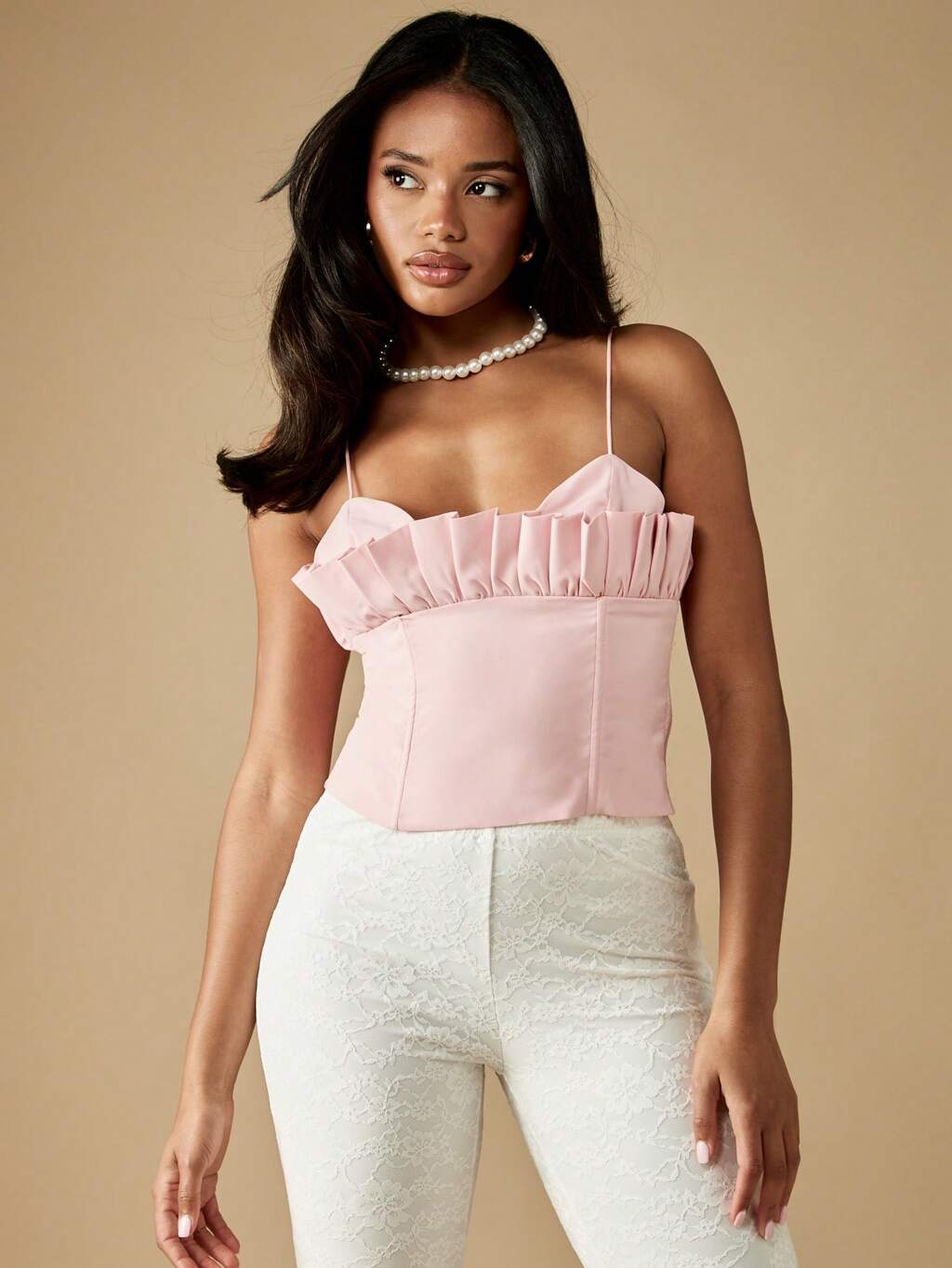 MISSGUIDED 구조화된 보디스가 있는 러플 트림 코르셋 캐미솔