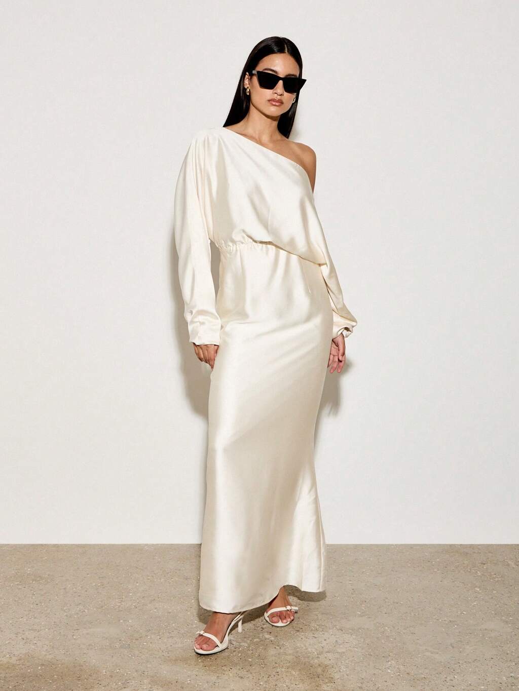 AiiRZ 한 어깨 비대칭 롱 슬리브 맥시 드레스 엠파이어 웨스트 우아한 웨딩 게스트 특별한 기회 포멀 가운 겨울 휴가 볼 이브닝 파티