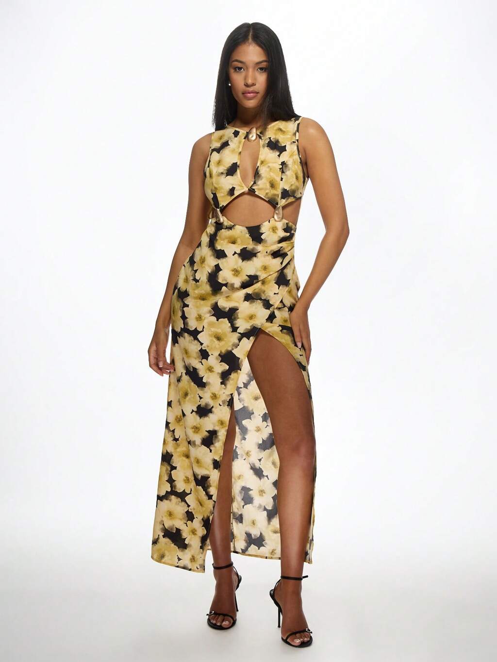MISSGUIDED 사이드 슬릿이 있는 플로럴 컷아웃 맥시 드레스