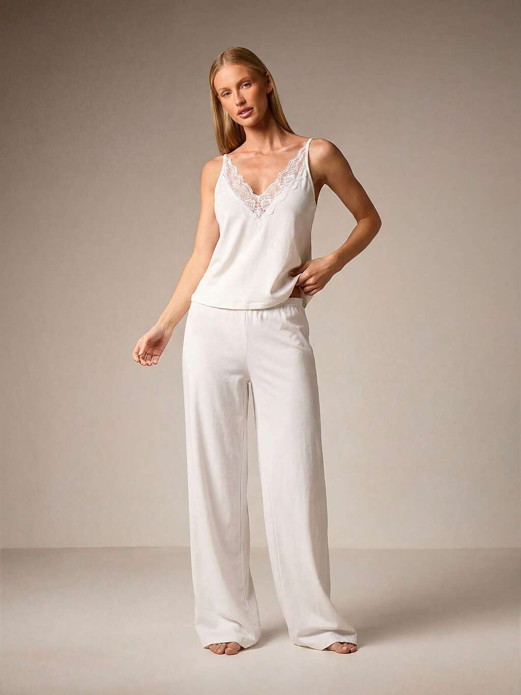 AiiRZ 레이스 트림 캐미솔 및 긴 바지 새틴 잠옷 세트 잠옷 라운지웨어 나이트웨어 투피스 이너웨어 부드럽고 편안한