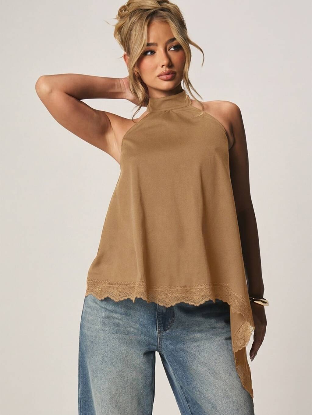 MISSGUIDED 홀터넥 비대칭 레이스 트림 탑