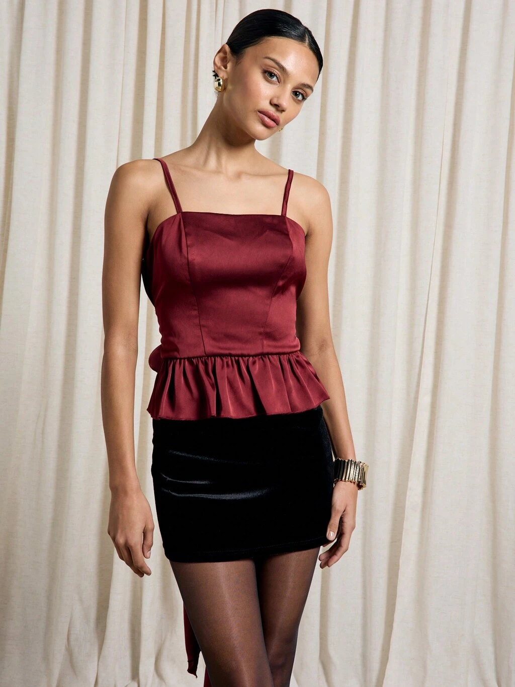 AiiRZ 새틴 플럼 캐미 탑, 보우 백 디테일, 우아한 이브닝 파티, 특별한 날, 홀리데이 포멀 웨어, 민소매 탱크 블라우스