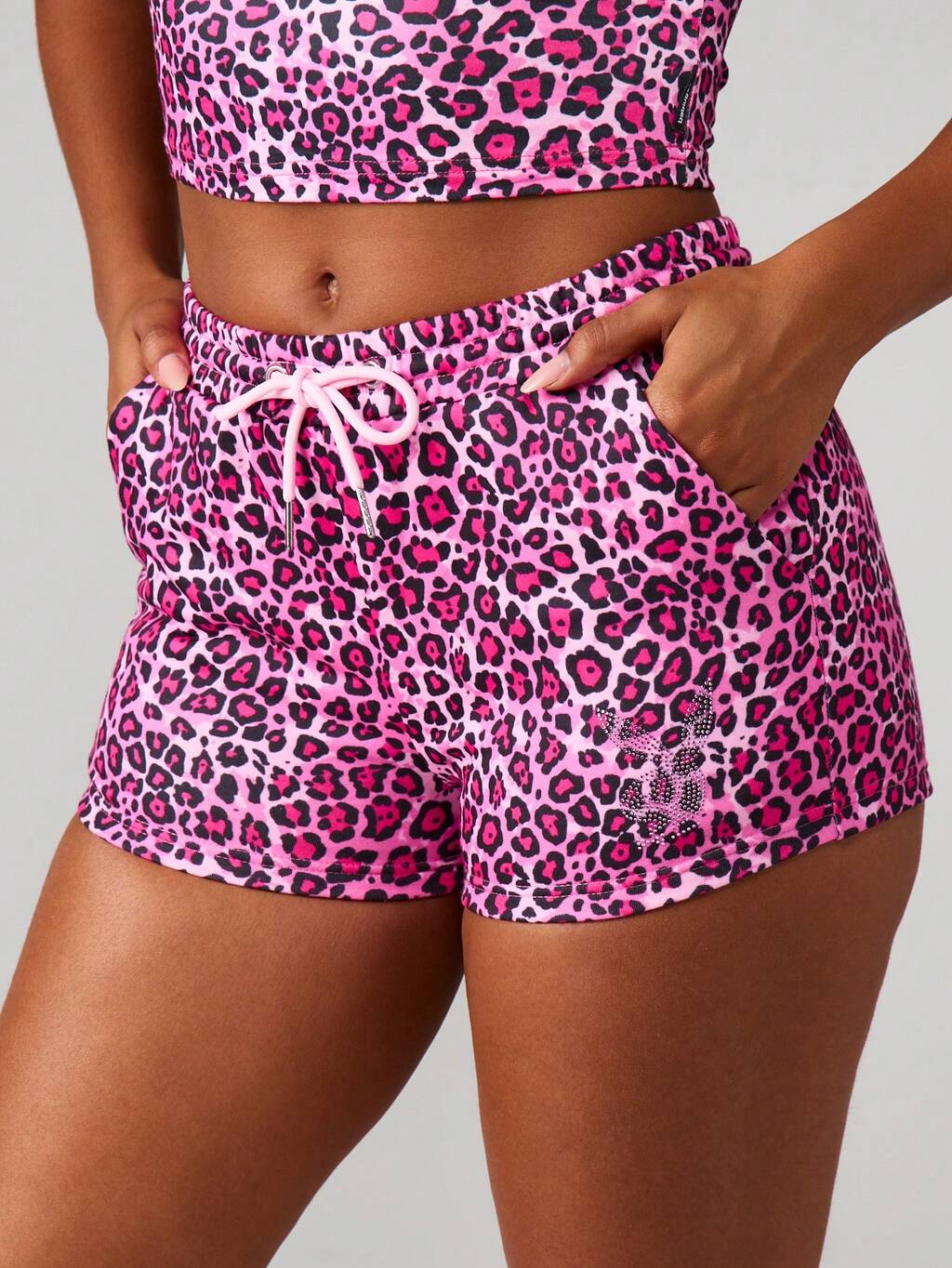 Missguided x Playboy 핑크 레오파드 프린트 하이웨이스트 반바지 (끈 포함)