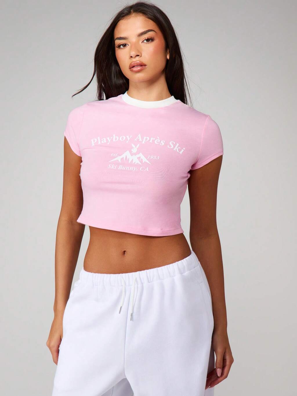 Missguided x Playboy 대비되는 트림이 있는 그래픽 베이비 티셔츠