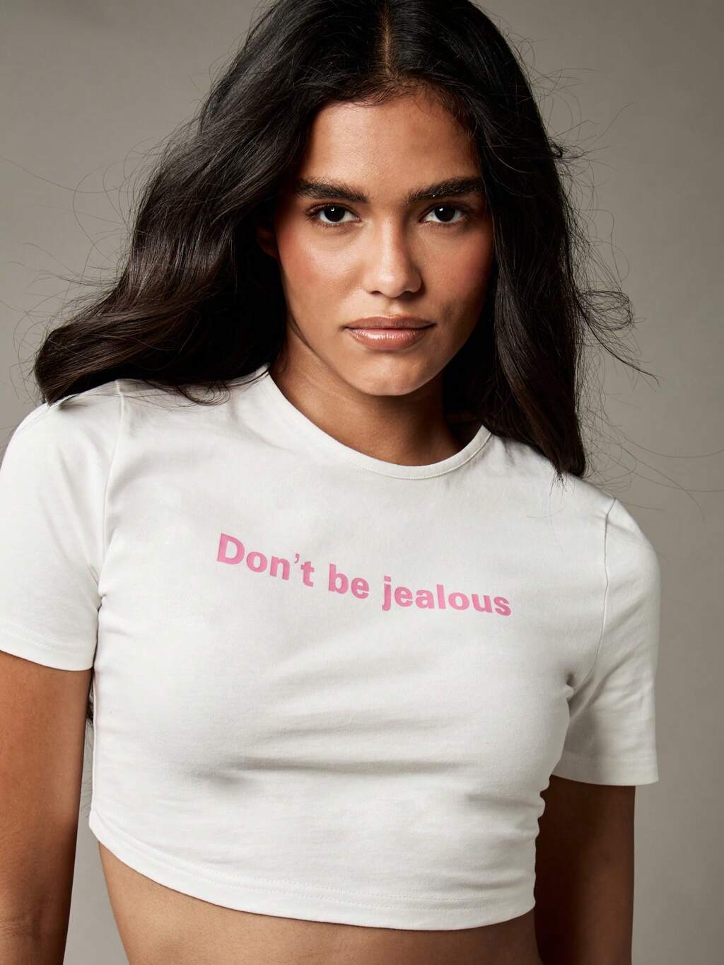 MISSGUIDED 핑크색 문구가 적힌 화이트 코튼 크롭 탑