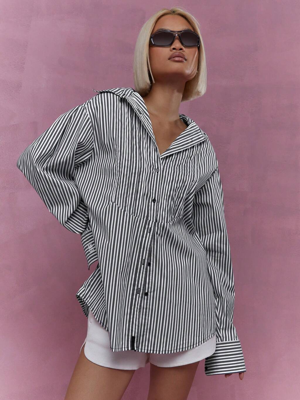 MISSGUIDED 줄무늬 오버사이즈 셔츠 블라우스
