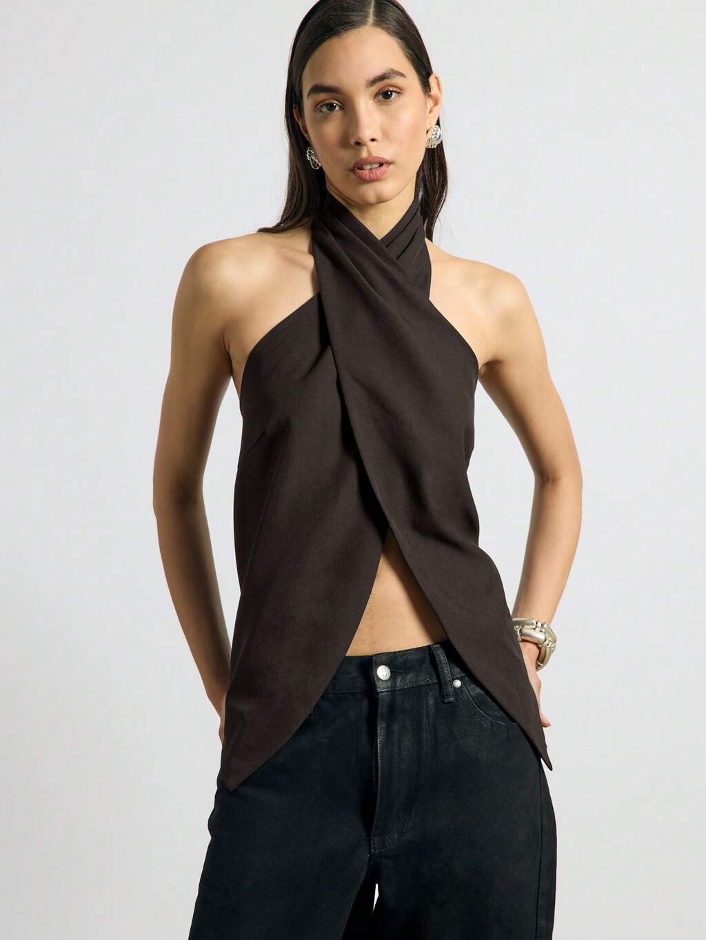 AiiRZ 고급스러운 크로스 프런트 할터넥 민소매 웨이스트코트 베스트 탑 이브닝 파티 클럽 패션 여성 현대적인 미니멀 시크 오피스 웨어