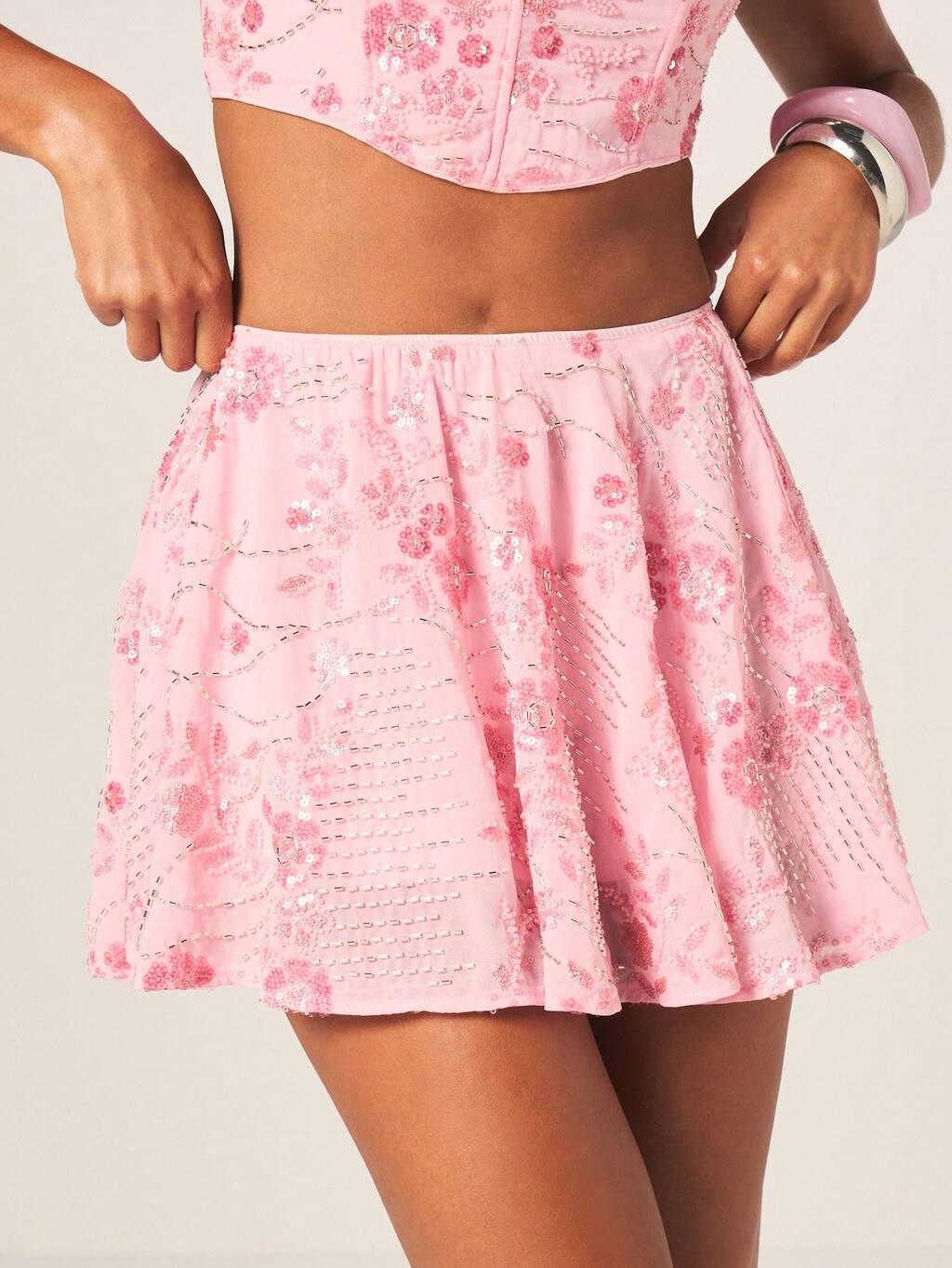 AiiRZ 반짝이는 스팽글 디스크 장식 미니 스커트 핑크 파티 클럽 이브닝 의상 바디콘 쉬머리 글리터 짧은 스커트