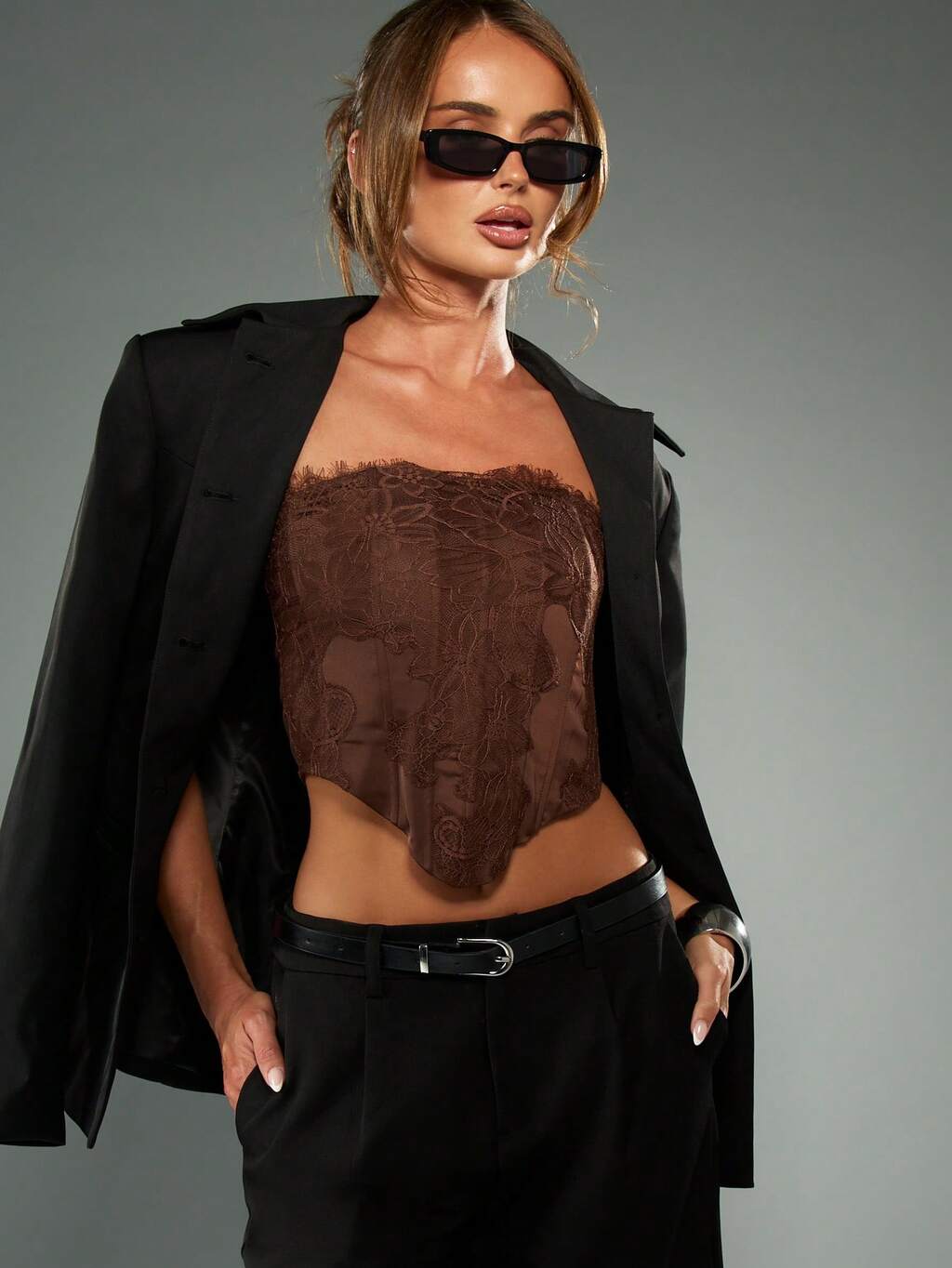 MISSGUIDED 구조화된 스트랩리스 코르셋 버스티에는 패션의 포인트입니다.