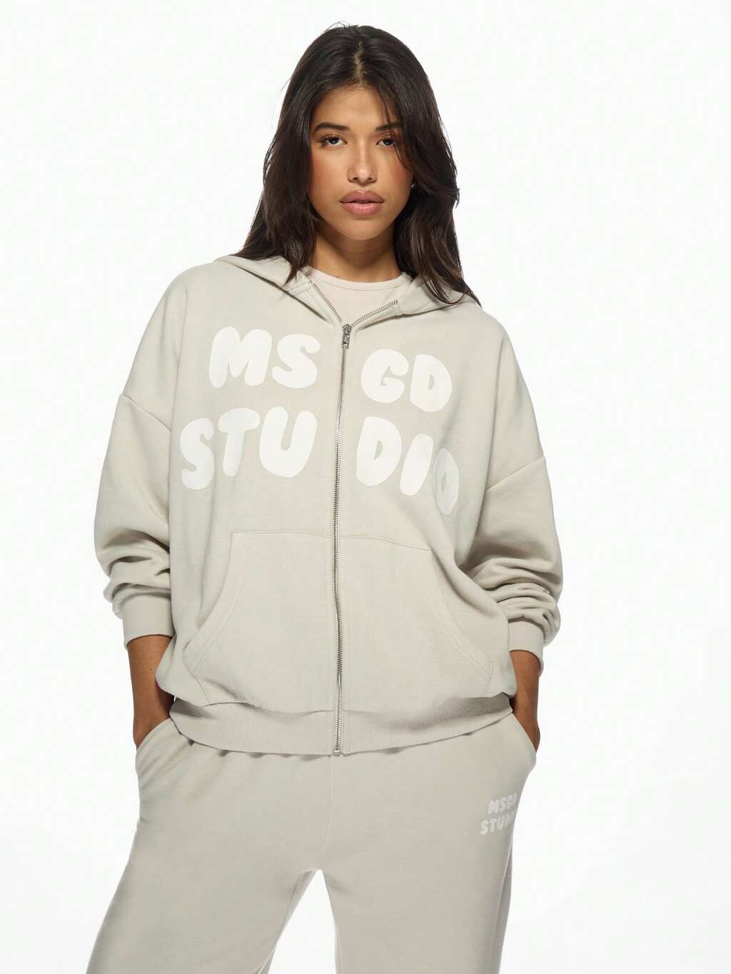 MISSGUIDED Oversized Studio Graphic Casual Zip-Up Sweatshirt