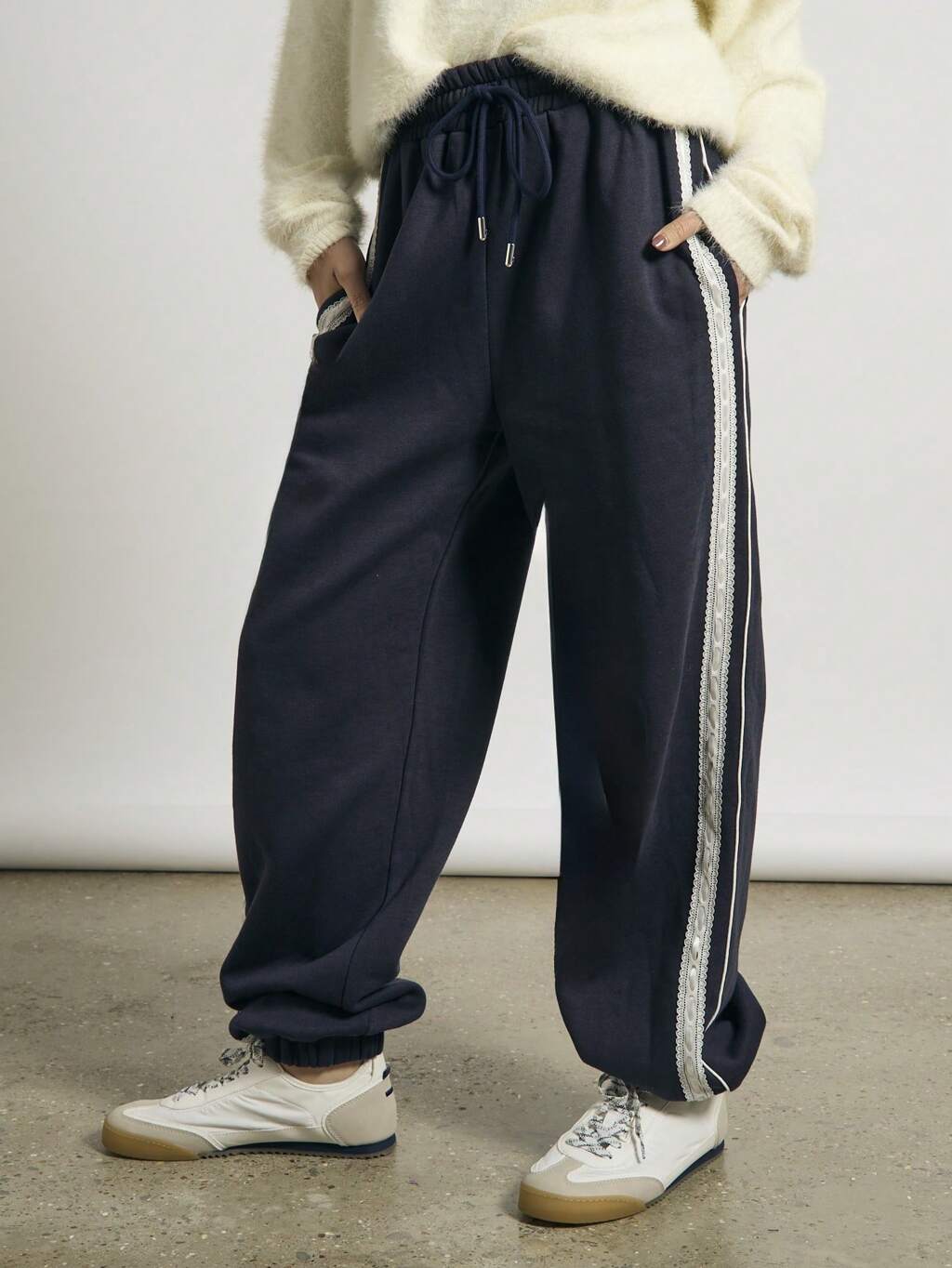 AiiRZ Classic Athletic Jogger Sweatpants With Lace Trim Side Stripe Cuffed Ankle Loungewear For Workout Yoga Running Leisure Fall Winter