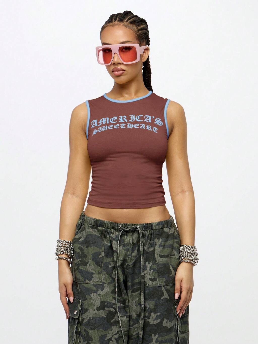 SUMWON WOMEN 4th Of July America's Sweetheart Tank Crop Top Y2K Aesthetic Baby Tee Vintage Style Urban Streetwear Athletic Fitted Ribbed Summer Festival Fashion Basic Tank
