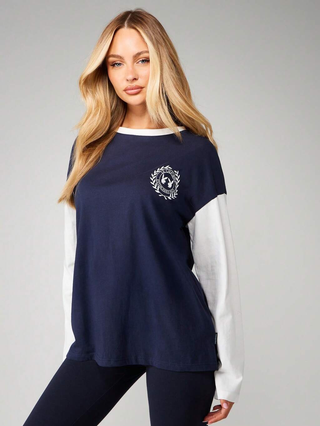 Missguided x Playboy Long Sleeve Color Block Tee With
