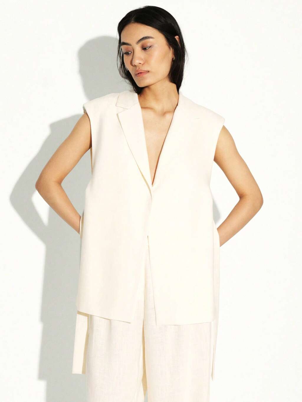 KSTM Women's Sleeveless Open Side Vest Blazer With Deep V Neck And Relaxed Fit For Professional Office Wear