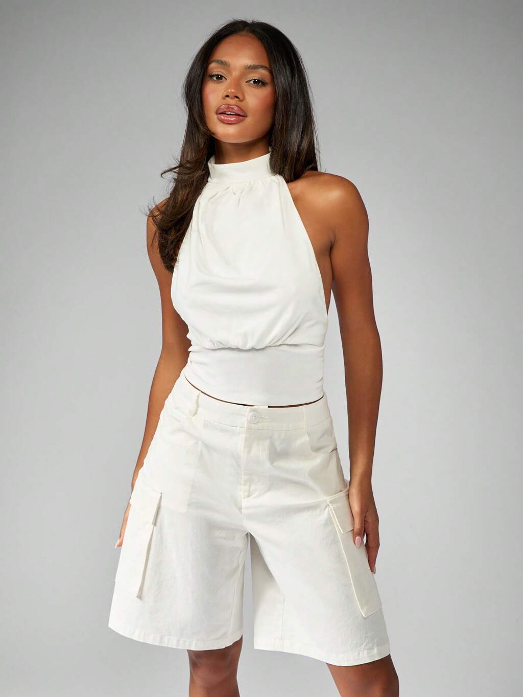 MISSGUIDED Ruched Halter Neck Sleeveless Fitted Cropped Tank Top