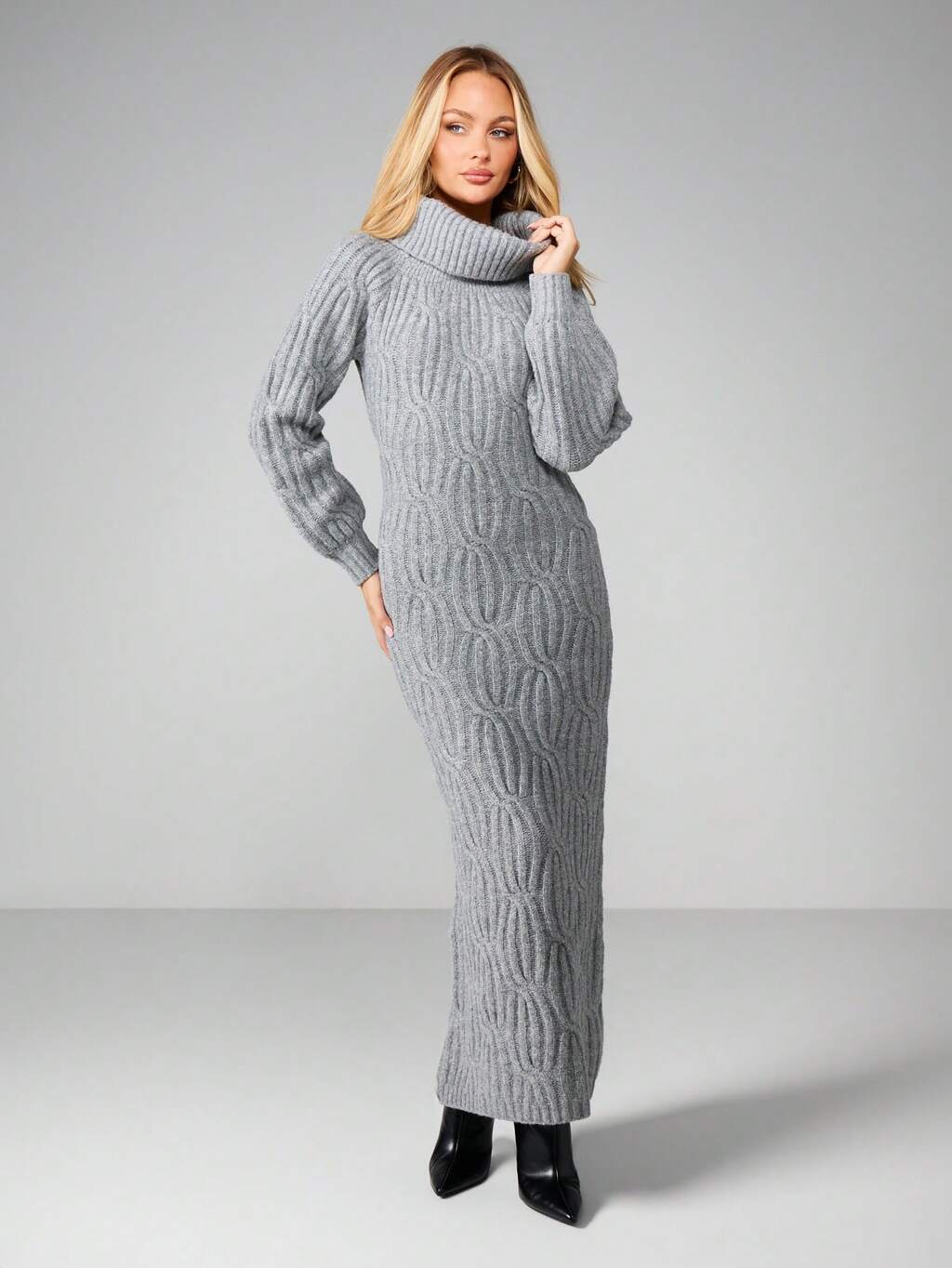 MISSGUIDED Cable Knit Turtleneck Maxi Dress