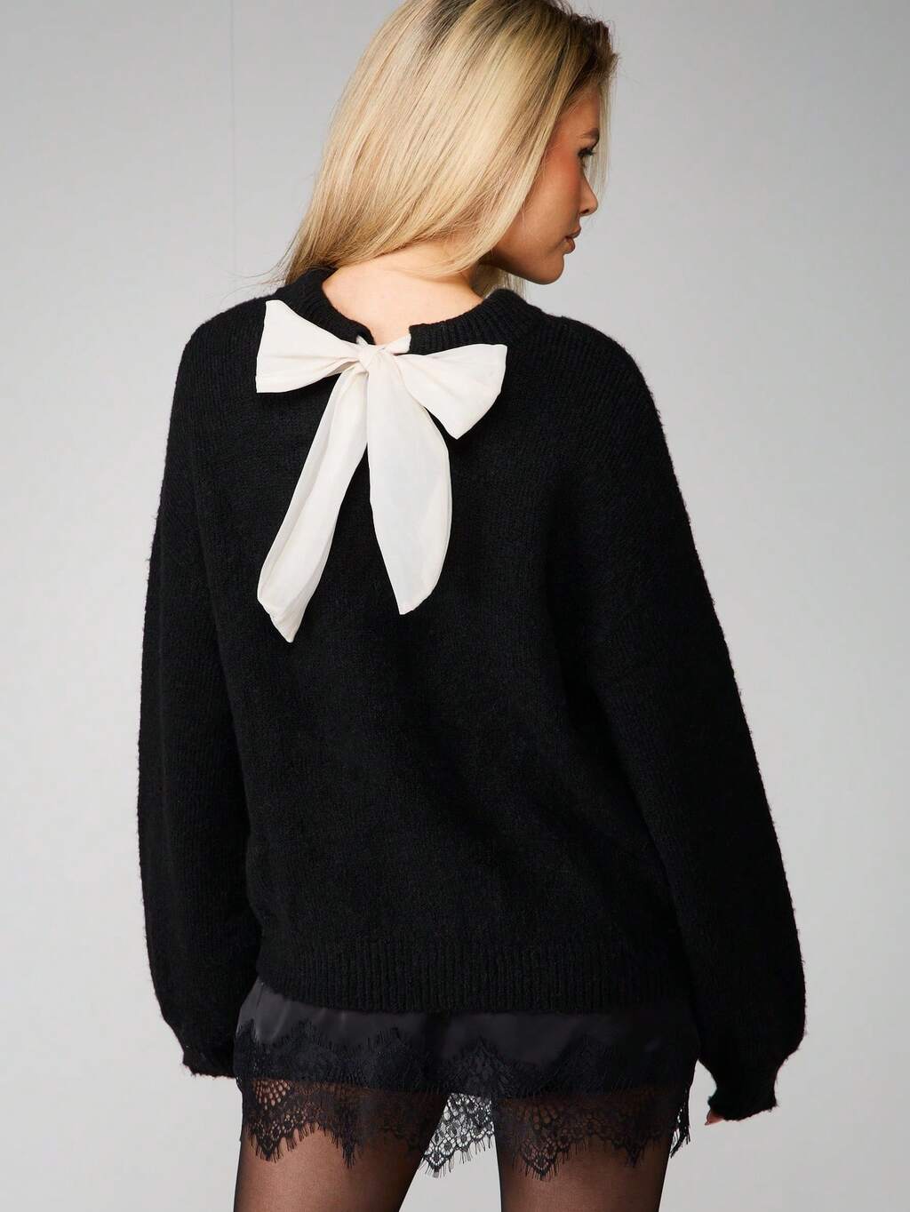 MISSGUIDED Christmas Oversized Knit Sweater With Chiffon Bow