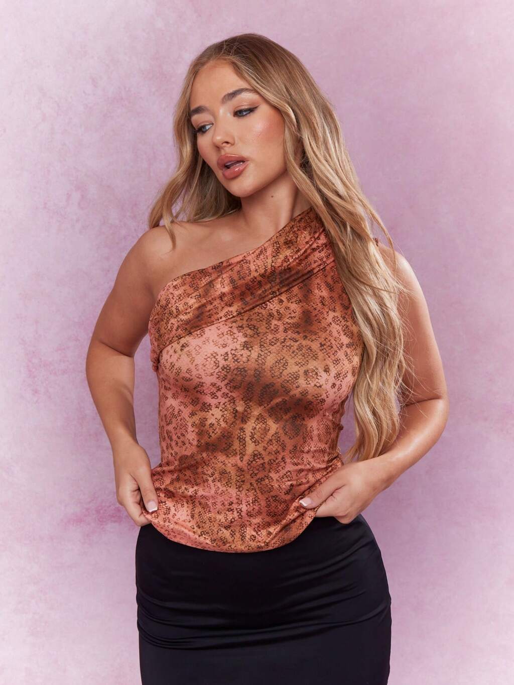 MISSGUIDED Asymmetric Snake Print One Ruched Shoulder Sleeveless Top
