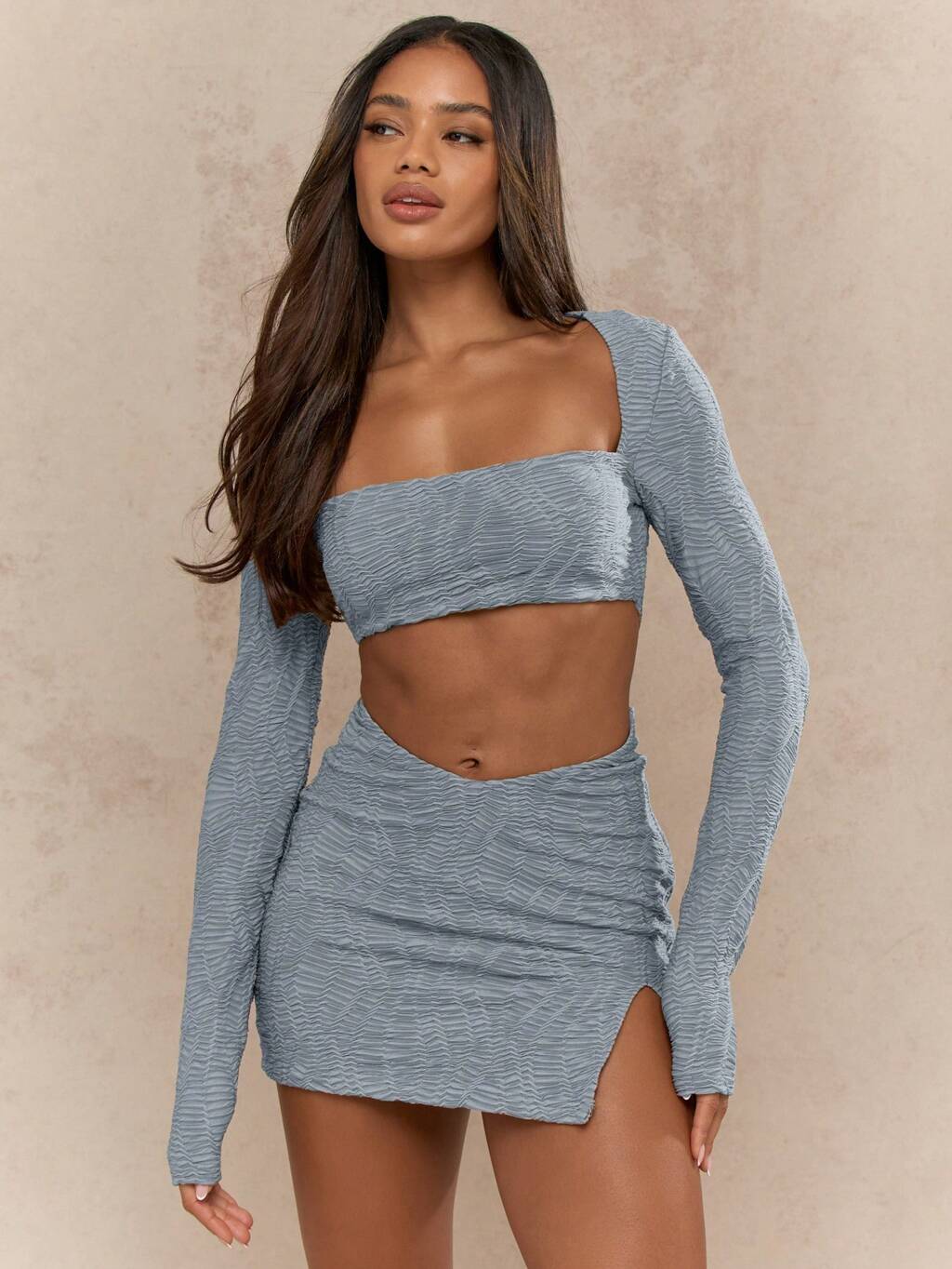 MISSGUIDED Textured Cut Out Long Sleeve Mini Party Dress With Square Neckline And Ruching