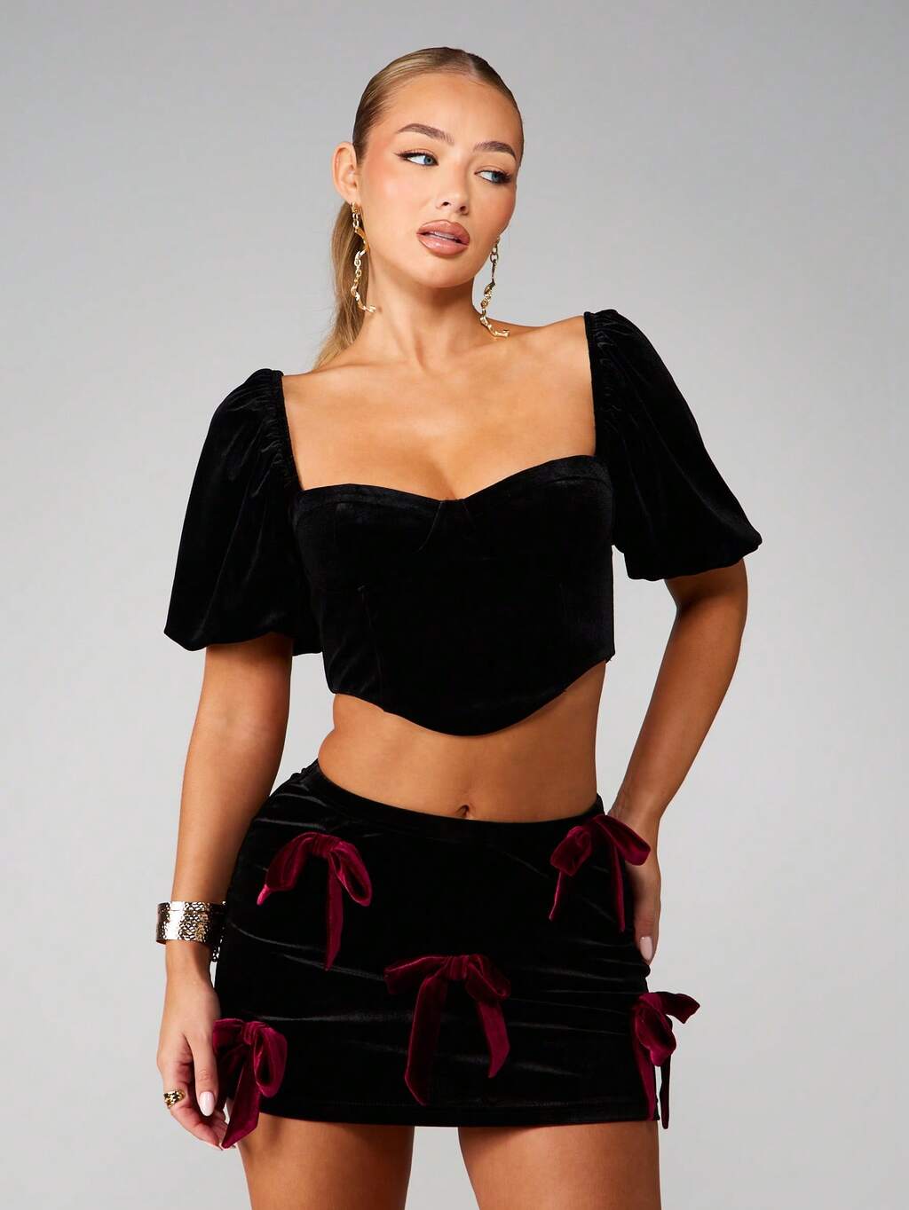 MISSGUIDED Aksamitny gorset z bufiastymi rękawami