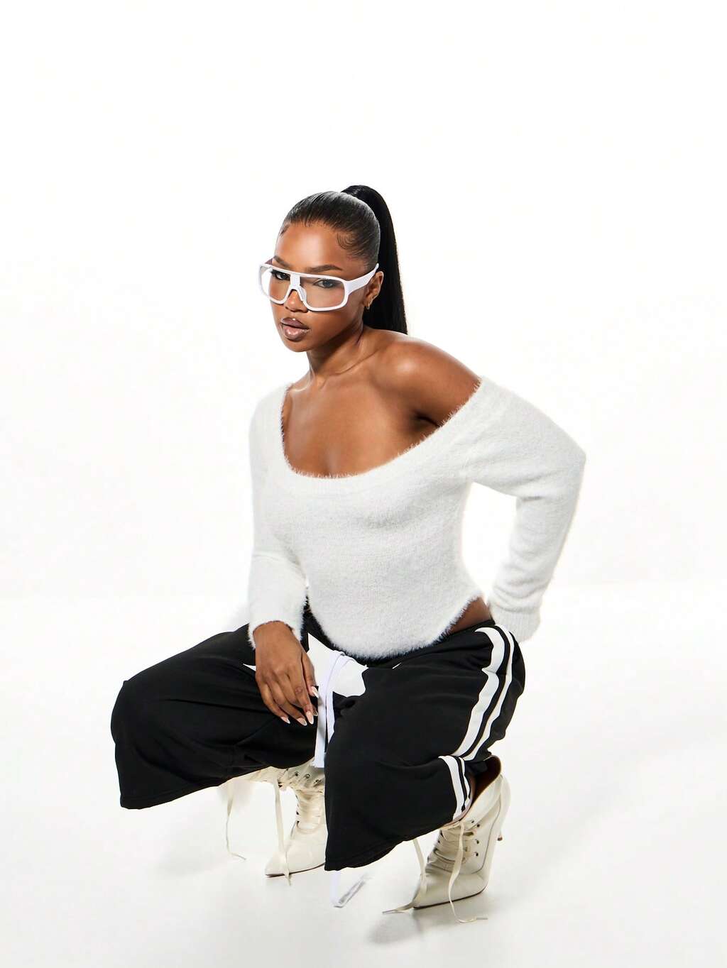 SUMWON WOMEN Puszysty dzianinowy body z okrągłym dekoltem i długim rękawem, jesień/zima, przytulny sweter