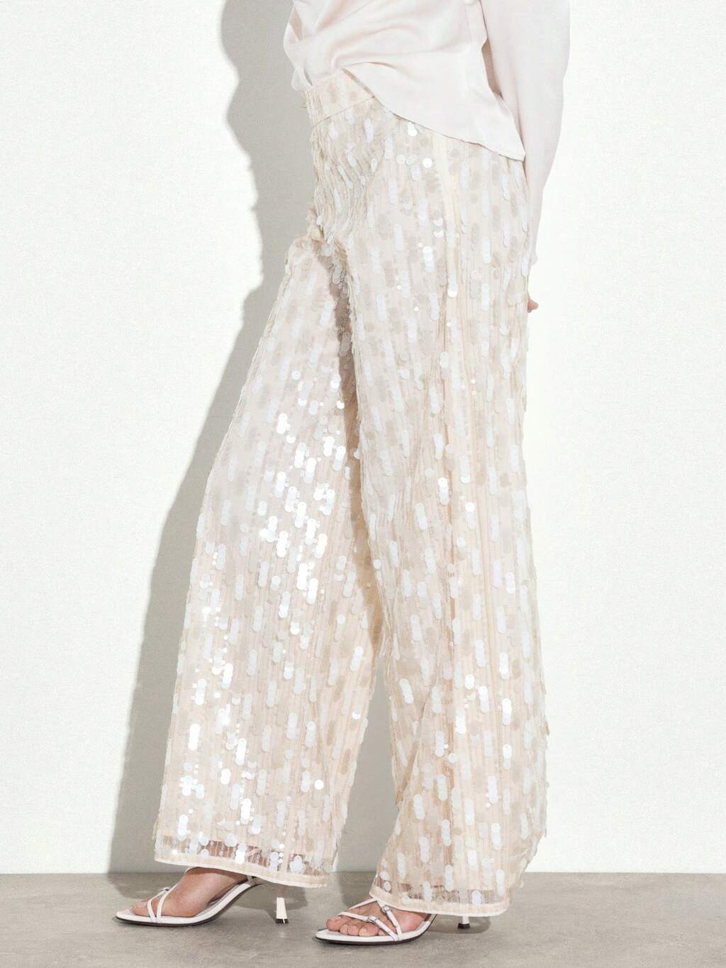 KSTM Spodnie damskie z szerokimi nogawkami i cekinami, spodnie palazzo z wysokim stanem i błyszczącymi zdobieniami na wieczorne imprezy
