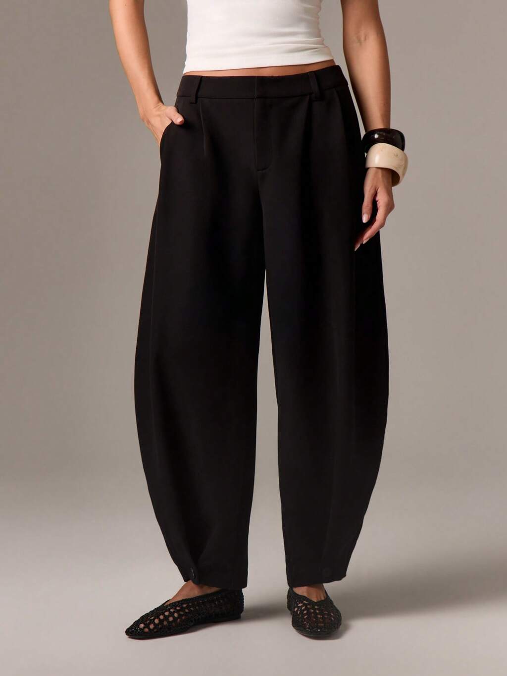 AiiRZ Spodnie z szerokimi nogawkami i zwężanymi nogawkami w stylu baryłkowym, do profesjonalnego biura, formalnego stroju, luźnego kroju, plisowane z przodu