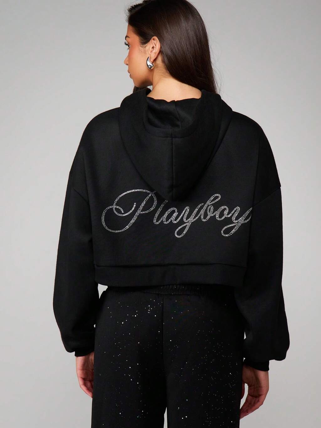Missguided x Playboy Bluza z kapturem oversize zdobiona diamentami