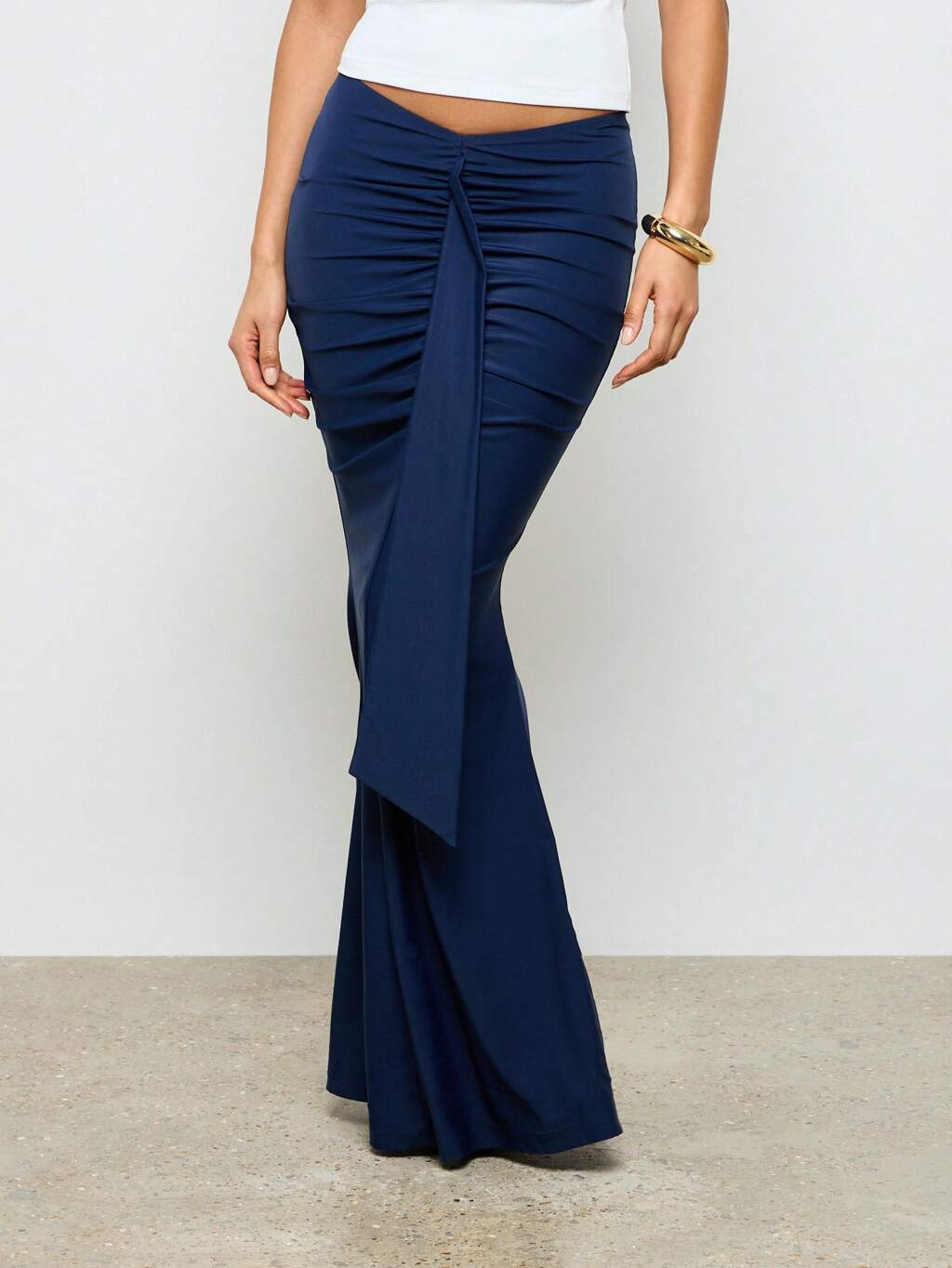 AiiRZ Spódnica w stylu syreny, długa, wieczorowa, formalna, elegancka, do ziemi, marszczona, drapowana, na wesele, na przyjęcie, na jesień i zimę, sezon świąteczny