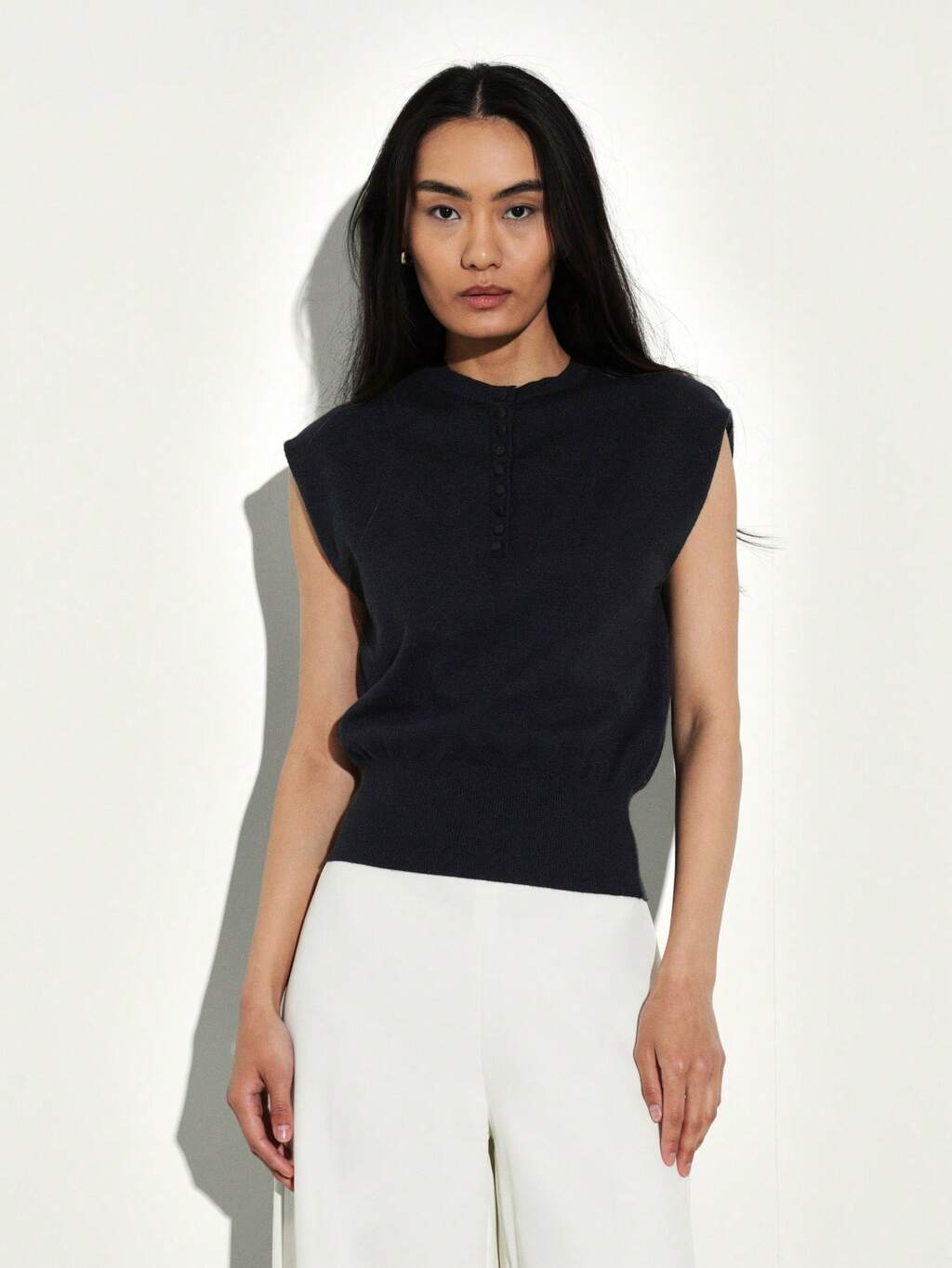 KSTM Prążkowany golf, bezrękawnik z dzianiny z guzikami z przodu i ozdobnym detalem