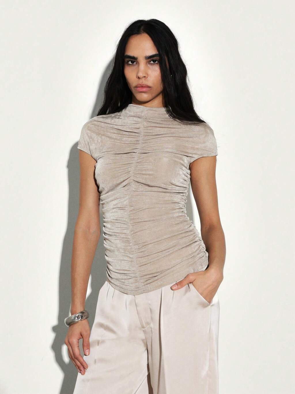 KSTM Bluzka z krótkim rękawem i marszczonym dekoltem w serek, idealna na co dzień i na lato